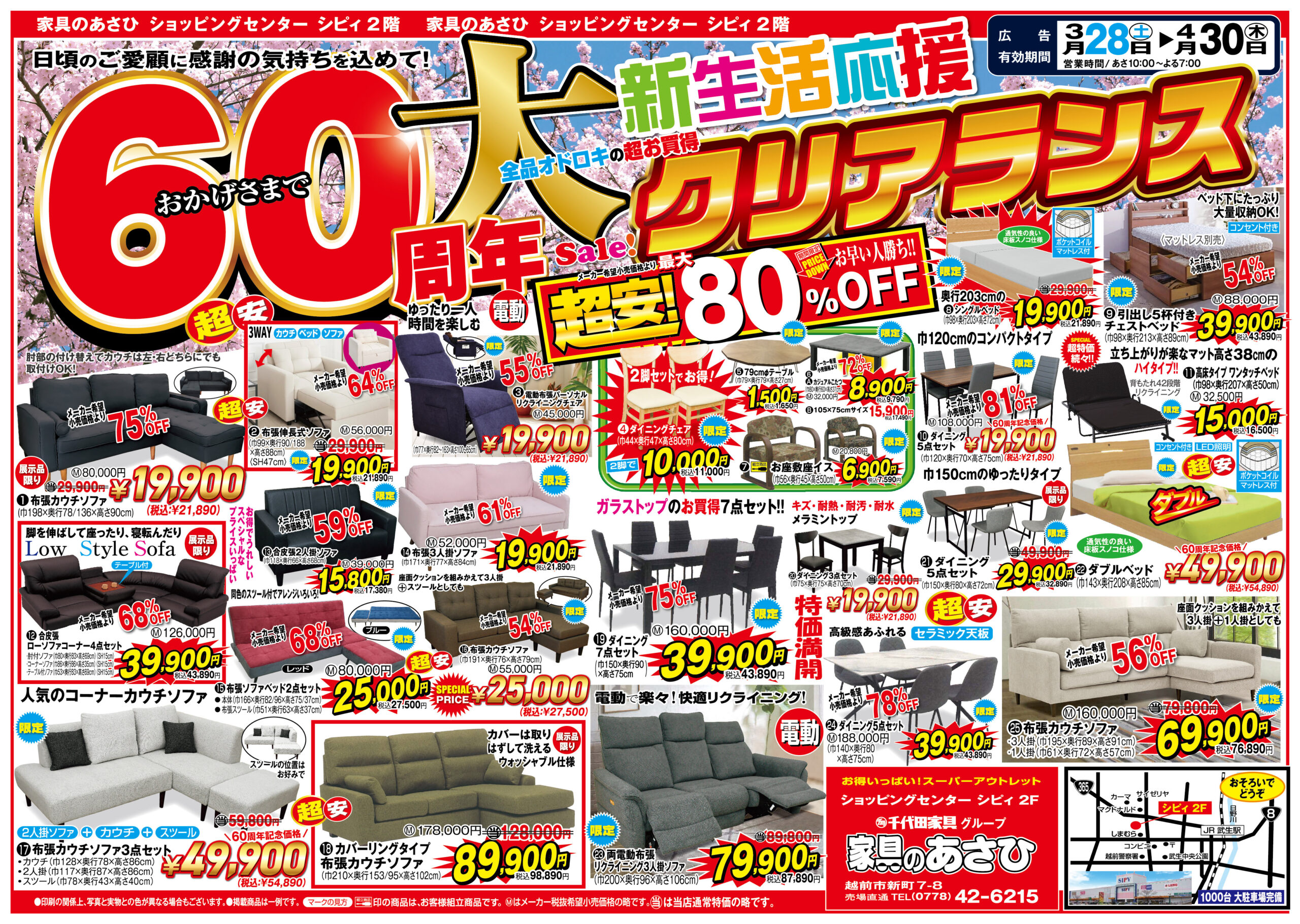 ショッピングセンター シピィ 2F千代田家具グループ 家具のあさひ